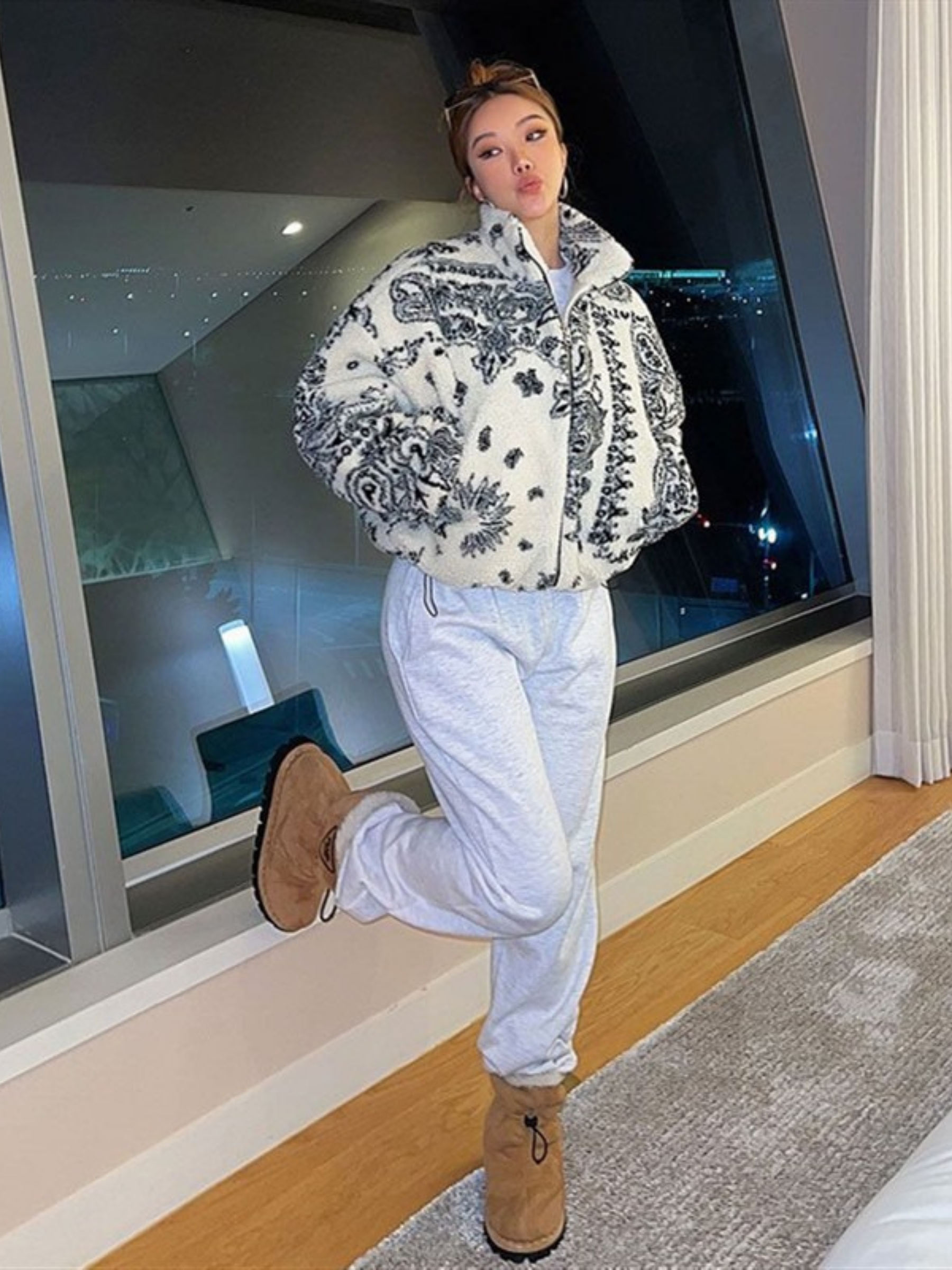 - All-Over Bandana Pattern: Japanese-inspired paisley artwork woven directly into the fleece for a bold, elevated street look.