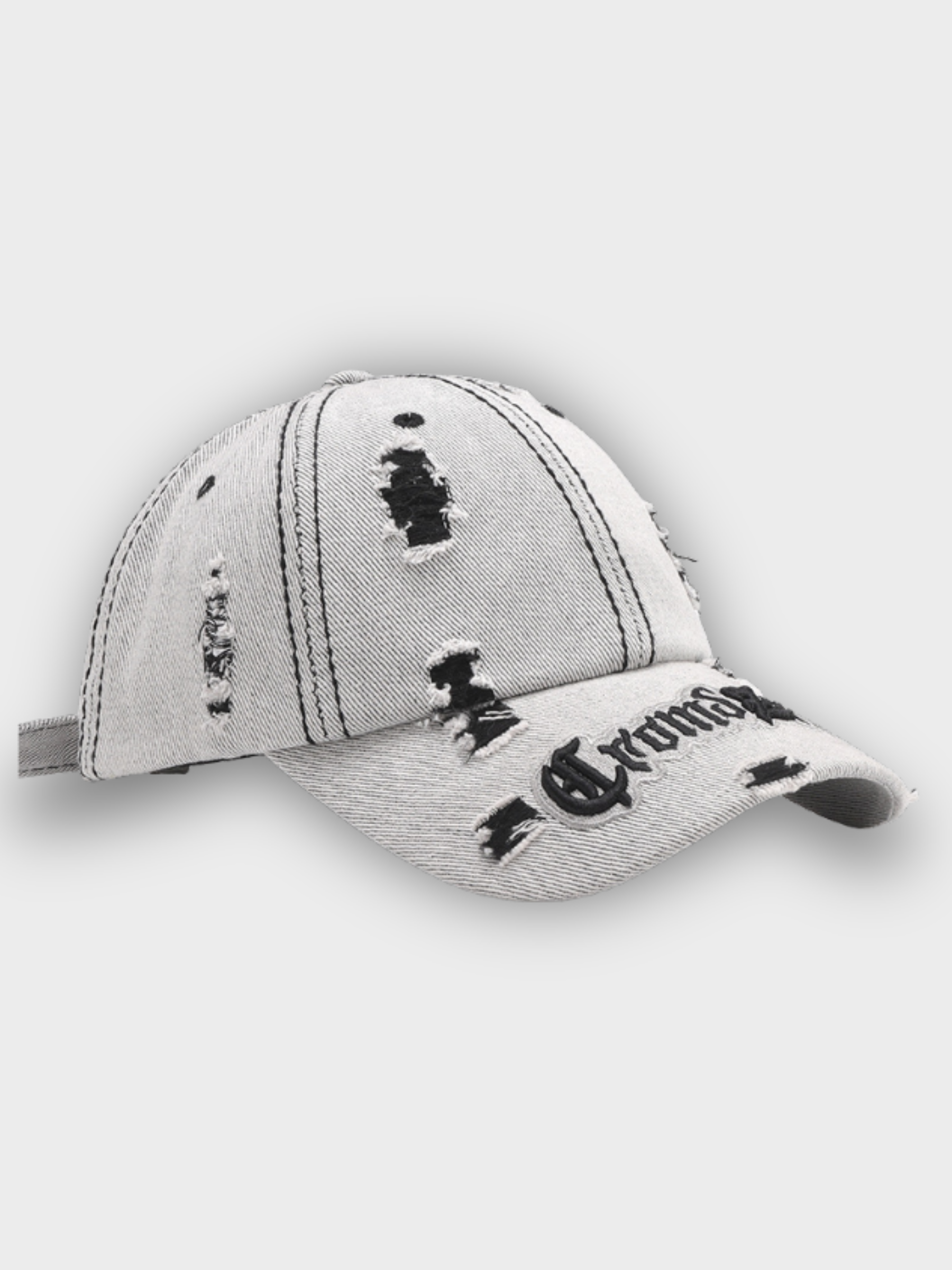 Ripped-edge detailing gives this cap a worn-in, effortlessly cool look straight out of the streetwear playbook.