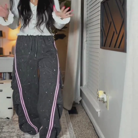 Designed to sit comfortably at the waist with a loose drape through the leg, these pants are built for styling versatility — from fitted tanks and cropped tops to oversized hoodies and technical sneakers. The washed finish adds texture and depth, giving every colorway a slightly worn, lived-in edge.